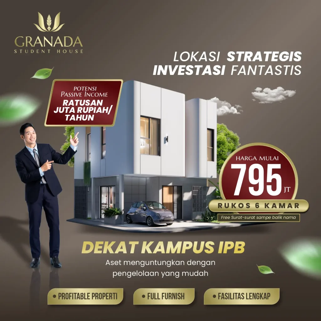 Granada Student House menawarkan peluang investasi yang aman dan menguntungkan dengan konsep hunian kost modern minimalis di dekat Kampus IPB. Dengan pengelolaan profesional dan fasilitas lengkap, Anda hanya perlu duduk santai dan menikmati passive income yang stabil. Persiapkan masa pensiun Anda dengan investasi yang memberi keuntungan jangka panjang!